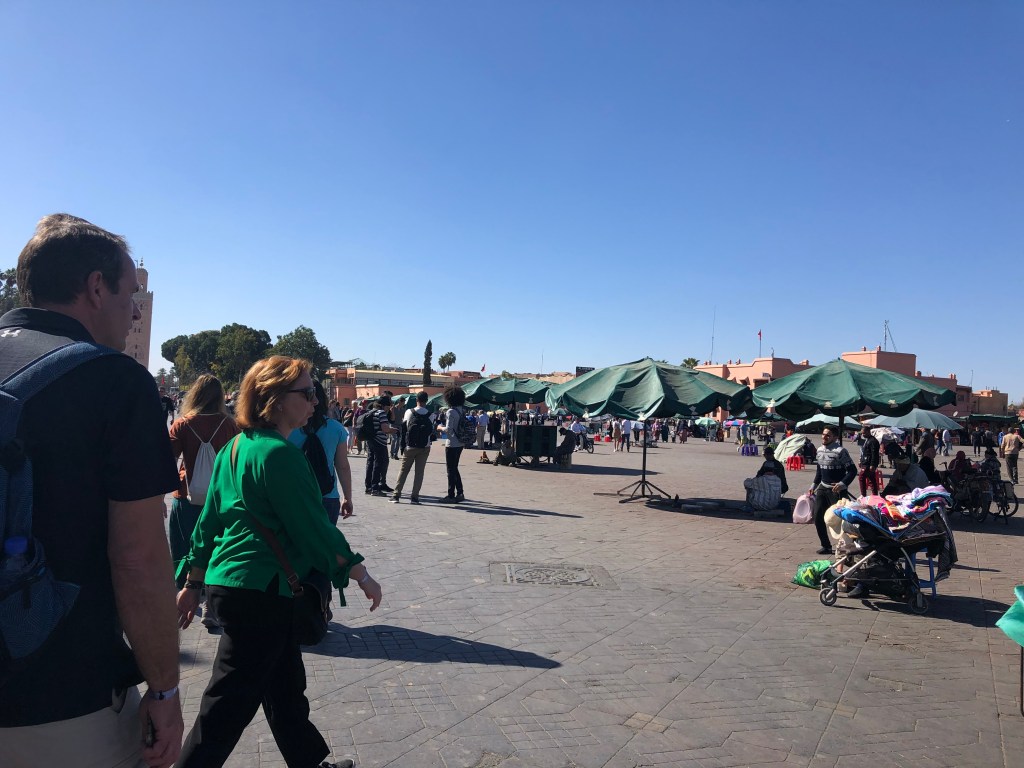 The crowd spilled out into Jamaa Lafna Square like a waterfall into a lake. One moment, we were elbow to elbow in a narrow walkway, and the next, I found myself thrust into the bustling and vivacious town square.