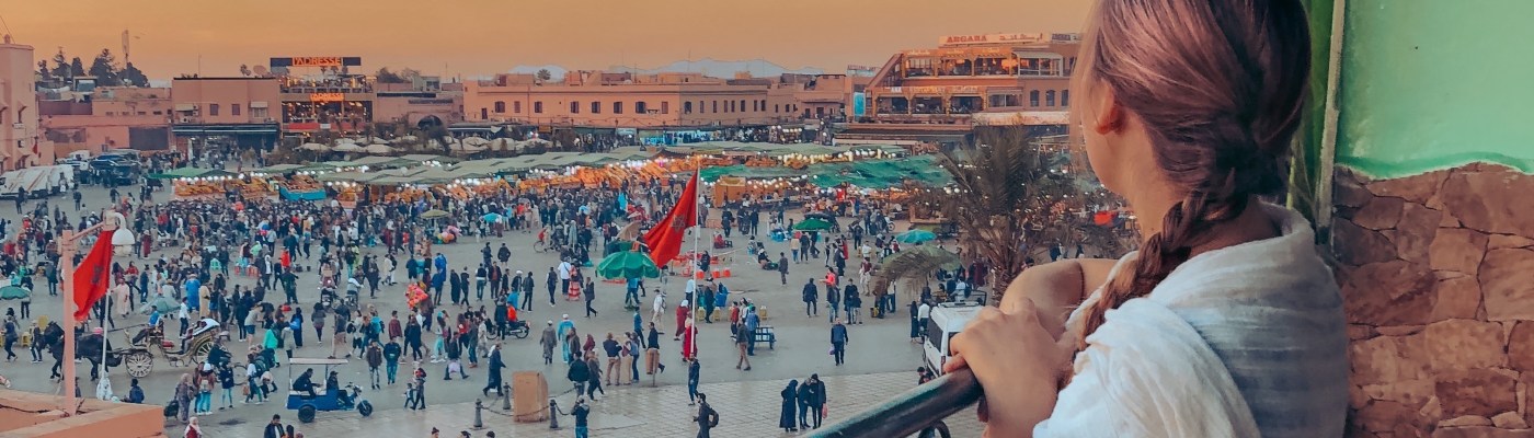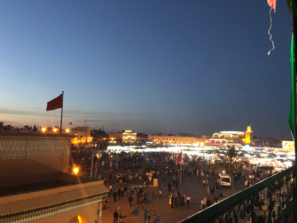 Instead, we found a lovely little restaurant tucked into the corner of the Square that served gourmet juices and teas, with an upstairs seating area that opened to a gorgeous view of the square! We watched the sun set from this patio, all the while sipping delicious strawberry-kiwi juices and Moroccan whiskey tea.