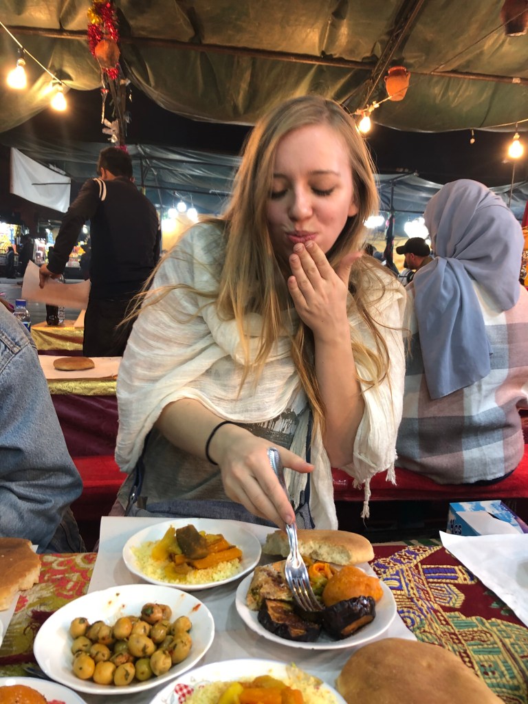 Two of the companions that I had met in the hostel went out to dinner with me to one of these tents on my second night there, and unfortunately, after ordering some fish and seafood, she came down with terrible food poisoning and was sick all night long, eventually having to miss our cross country trip to the Sahara (which I will provide more details about in a different post 😜). Likely, the only thing that you can safely eat at one of these tents is vegetarian tajine, which you would be able to find for much cheaper elsewhere!