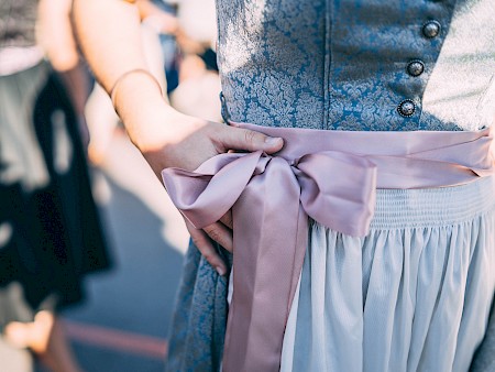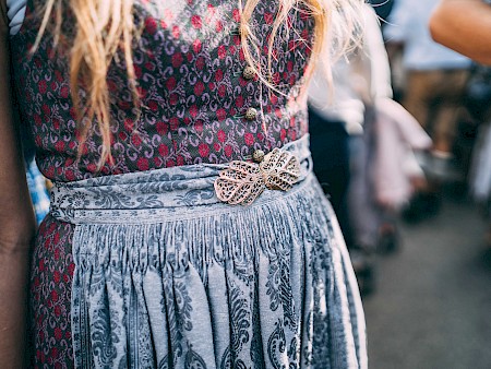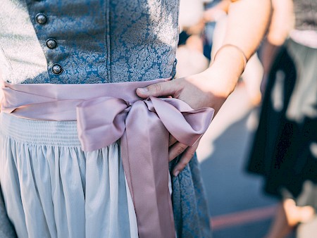 Your dirndl says a lot more than you think: when tying on your apron (schürze), the placement of your bow (schleifen) communicates your relationship status to everyone around you. Thus, be very conscious of where your bow rests, or you may find yourself fending off many unwanted advances from keen German men!