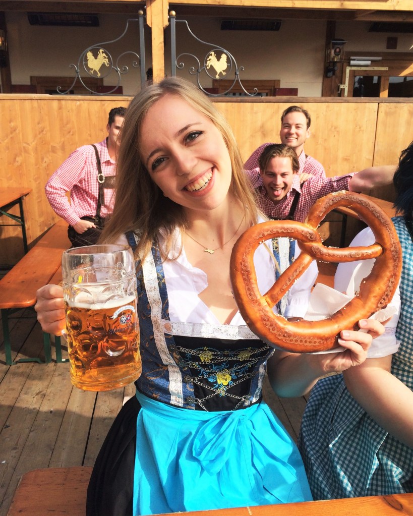 Luckily, there is plenty to choose from throughout the festival grounds if you’re going to Munich, or in the beer tent if you opt for a local celebration! Generally, the Munich festival will have more festival-type food – like bratwürst and bretzle (pretzel), and the local festivals will have more traditional food, like Kasespatzle and schnitzel. Personally, I think the food was much better at the small, local celebration, and you got more bang for your buck! I was able to get some incredible Kasespatzle (German traditional mac and cheese), and let me tell you, nothing tastes better than mac and cheese after a long day of going drink-for-drink with a group of Germans at Oktoberfest!